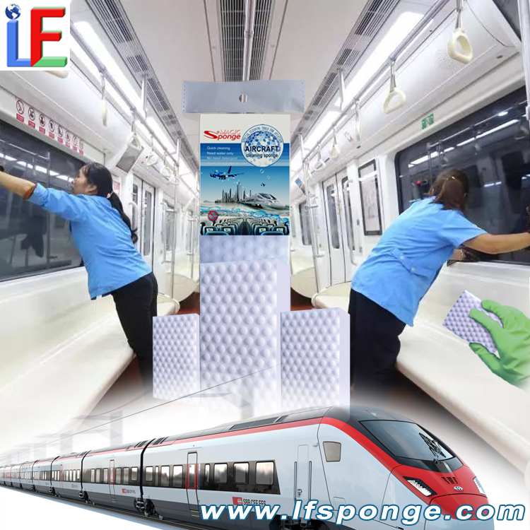The train melamine sponge uses a new type of cleaning material of compress melamine sponge. Durable material and strong cleaning power. Its microfiber filaments can penetrate into the small gaps on the surface of the object during the wiping process, quickly cleaning stubborn dirt and marks, and offers significant cleaning effect.