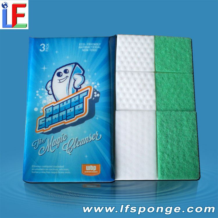 the revolutionary household cleaning product,made of melamine sponge,micro-fibres much smaller than ten thousandth of hair dip into the surfaces during scrubbing, quickly wipe off the stubborn stains and marks from all surfaces,with water only, no detergent, powerful cleaning effect. Especilaly the Magic Sponge Scouring Pad that made of melamine sponge compounding scouring pad(polyester fiber),It make more durable,not easy fractured, not easy breakdown, make melamine sponge more durable.