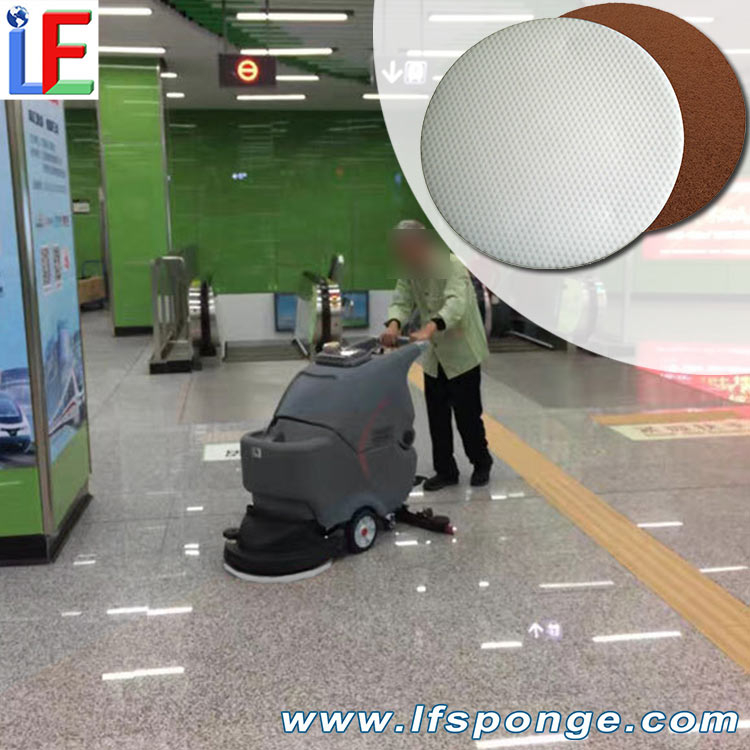 Subway floor cleaning melamine pad is made of compressed nano sponge and scouring. It is specially equipped with floor machine. The strong cleaning power of melamine sponge and the fine and hard internal microfibers can penetrate deeply into the micro floor surface. It is the new type of subway floor polishing pad.It is easy to install and disassemble, and has a obvious cleaning effect. It is widely used in subway floor , train waiting area, railway station square and other large floor cleaning!